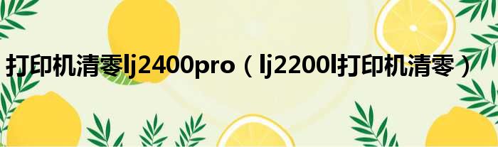 打印机清零lj2400pro(lj2200l打印机清零)