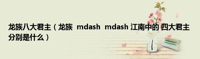 龙族八大君主(龙族 mdash mdash 江南中的 四大君主 分别是什么)