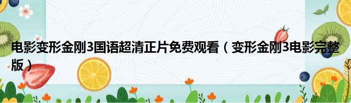 导读 大家好,今天小六子来为大家解答以下的问题,关于电影变形金刚3国语超清正片免费观看,变形金刚3电影完整版这个很多人还不知道,现在让我们