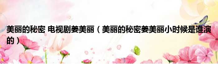 大家好,今天小六子来为大家解答以下的问题,关于美丽的秘密 电视剧姜美丽,美丽的秘密姜美丽小时候是谁演的这个很多人还不知道,现在让我们一起来看看吧!