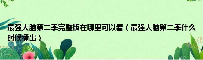 导读 大家好,今天小六子来为大家解答以下的问题,关于最强大脑第二季完整版在哪里可以看,最强大脑第二季什么时候播出这个很多人还不知道,现在