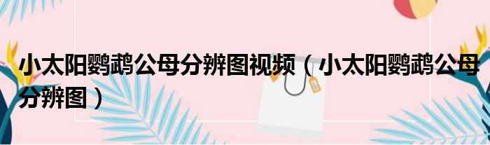 导读 大家好,今天小六子来为大家解答以下的问题,关于小太阳鹦鹉公母分辨图视频,小太阳鹦鹉公母分辨图这个很多人还不知道,现在让我们一起来看