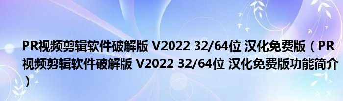 PR视频剪辑软件破解版 V2022 32/64位 汉化免费版(PR视频剪辑软件破解版 V2022 32/64位 汉化免费版功能简介)