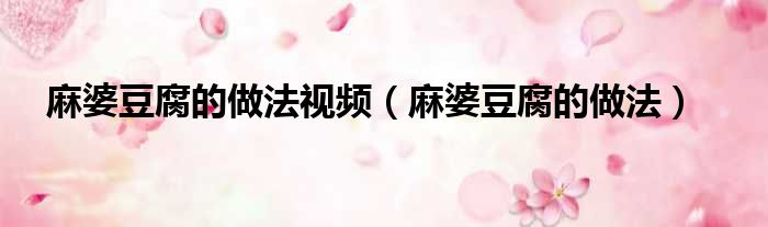 麻婆豆腐的做法视频(麻婆豆腐的做法)
