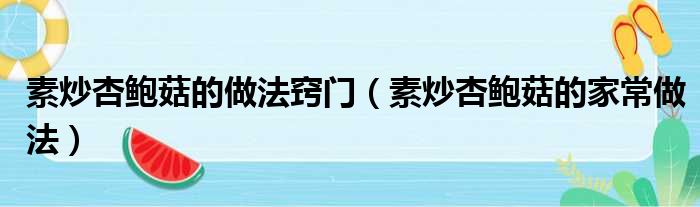 素炒杏鲍菇的做法窍门(素炒杏鲍菇的家常做法)