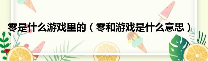 导读 大家好,今天小六子来为大家解答以下的问题,关于零是什么游戏里的,零和游戏是什么意思这个很多人还不知道,现在让我们一起来看看吧!1、零