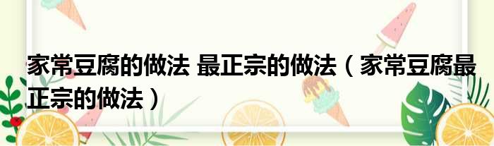 导读 大家好,今天小六子来为大家解答以下的问题,关于家常豆腐的做法 最正宗的做法,家常豆腐最正宗的做法这个很多人还不知道,现在让我们一起