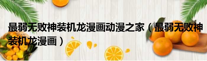 最弱无败神装机龙漫画动漫之家(最弱无败神装机龙漫画)