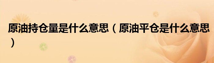 导读 大家好,今天小六子来为大家解答以下的问题,关于原油持仓量是什么意思,原油平仓是什么意思这个很多人还不知道,现在让我们一起来看看吧!1