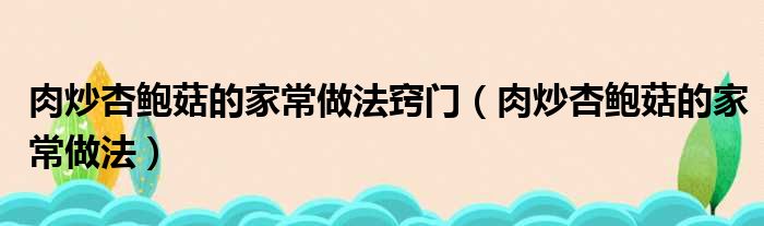 肉炒杏鲍菇的家常做法窍门(肉炒杏鲍菇的家常做法)