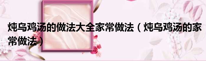 炖乌鸡汤的做法大全家常做法(炖乌鸡汤的家常做法)