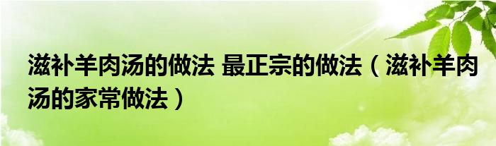 滋补羊肉汤的做法 最正宗的做法(滋补羊肉汤的家常做法)