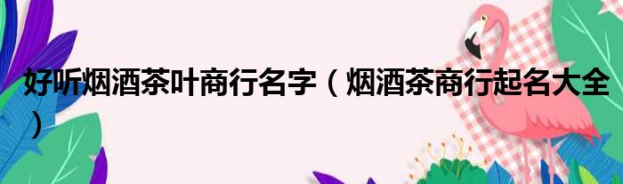 导读 大家好,今天小六子来为大家解答以下的问题,关于好听烟酒茶叶商行名字,烟酒茶商行起名大全这个很多人还不知道,现在让我们一起来看看吧!1