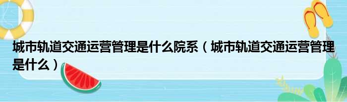 城市轨道交通运营管理是什么院系(城市轨道交通运营管理是什么)