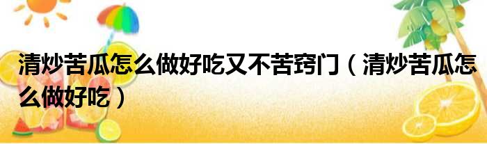 清炒苦瓜怎么做好吃又不苦窍门(清炒苦瓜怎么做好吃)
