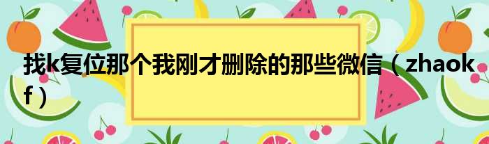 导读 大家好,今天小六子来为大家解答以下的问题,关于找k复位那个我刚才删除的那些微信,zhaokf这个很多人还不知道,现在让我们一起来看看吧!1