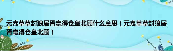 元嘉草草封狼居胥赢得仓皇北顾什么意思(元嘉草草封狼居胥赢得仓皇北顾)
