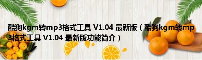 导读 大家好,关于酷狗kgm转mp3格式工具 V1 04 最新版,酷狗kgm转mp3格式工具 V1 04 最新版功能简介这个很多人还不知道,小勒来为大家解答以上