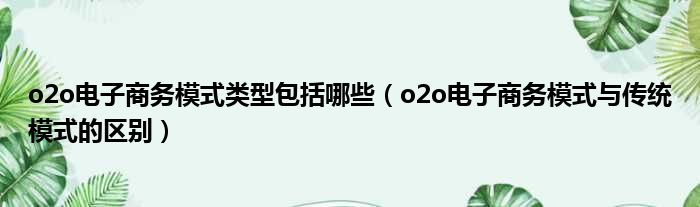 o2o电子商务模式类型包括哪些(o2o电子商务模式与传统模式的区别)