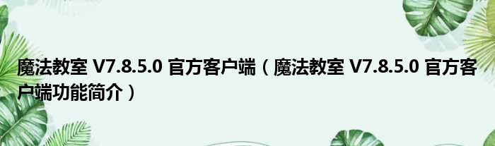魔法教室 V7.8.5.0 官方客户端(魔法教室 V7.8.5.0 官方客户端功能简介)