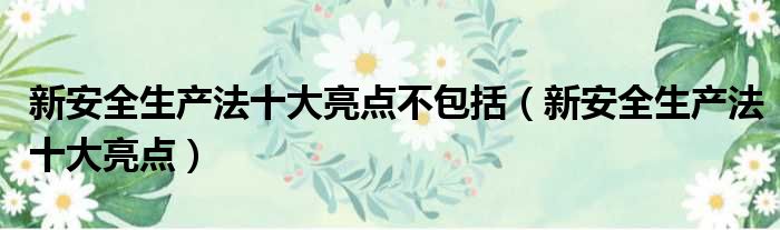 新安全生产法十大亮点不包括(新安全生产法十大亮点)