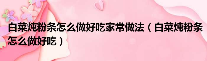白菜炖粉条怎么做好吃家常做法(白菜炖粉条怎么做好吃)