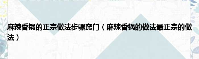 导读 大家好,今天小六子来为大家解答以下的问题,关于麻辣香锅的正宗做法步骤窍门,麻辣香锅的做法最正宗的做法这个很多人还不知道,现在让我们