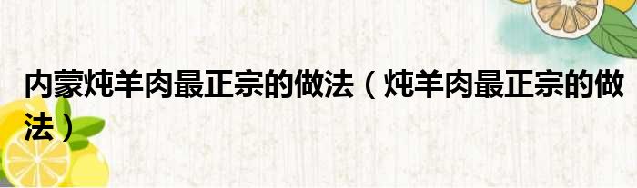 内蒙炖羊肉最正宗的做法(炖羊肉最正宗的做法)