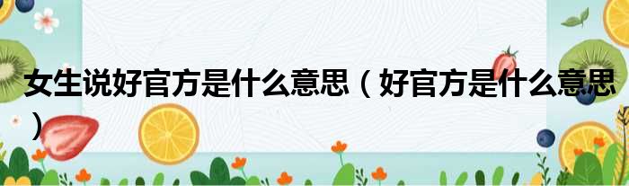 大家好,今天小六子来为大家解答以下的问题,关于女生说好官方是什么意思,好官方是什么意思这个很多人还不知道,现在让我们一起来看看吧!