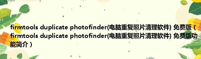 firmtools duplicate photofinder(电脑重复照片清理软件) 免费版(firmtools duplicate photofinder(电脑重复照片清理软件) 免费版功能简介)