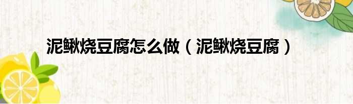 泥鳅烧豆腐怎么做(泥鳅烧豆腐)