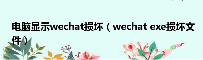 导读 大家好,今天小六子来为大家解答以下的问题,关于电脑显示wechat损坏,wechat exe损坏文件这个很多人还不知道,现在让我们一起来看看吧!1