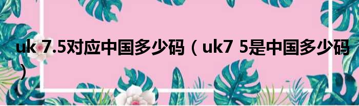 导读 大家好,今天小六子来为大家解答以下的问题,关于uk 7 5对应中国多少码,uk7 5是中国多少码这个很多人还不知道,现在让我们一起来看看吧!