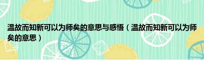 温故而知新可以为师矣的意思与感悟(温故而知新可以为师矣的意思)