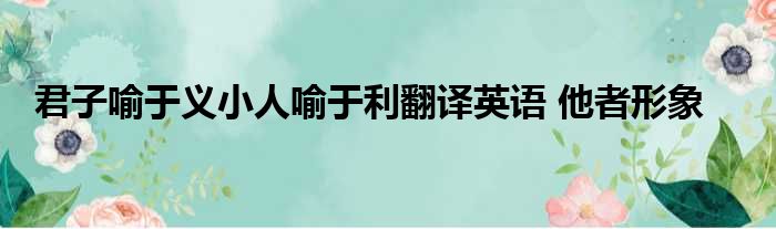 导读 大家好,今天小六子来为大家解答以下的问题,关于君子喻于义小人喻于利翻译英语 他者形象这个很多人还不知道,现在让我们一起来看看吧!1、