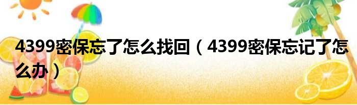 4399密保忘了怎么找回(4399密保忘记了怎么办)