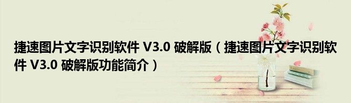 捷速图片文字识别软件 V3.0 破解版(捷速图片文字识别软件 V3.0 破解版功能简介)