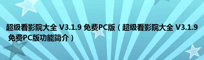 超级看影院大全 V3.1.9 免费PC版(超级看影院大全 V3.1.9 免费PC版功能简介)