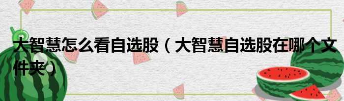 导读 大家好,今天小六子来为大家解答以下的问题,关于大智慧怎么看自选股,大智慧自选股在哪个文件夹这个很多人还不知道,现在让我们一起来看看