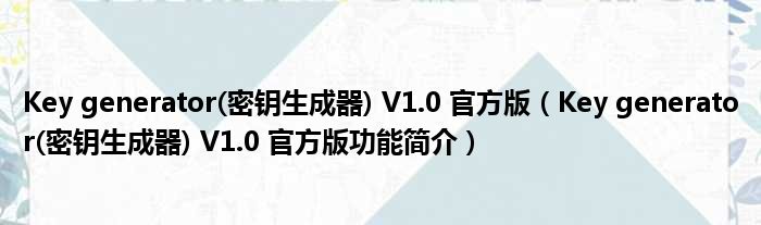 Key generator(密钥生成器) V1.0 官方版(Key generator(密钥生成器) V1.0 官方版功能简介)