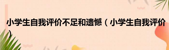 导读 大家好,今天小六子来为大家解答以下的问题,关于小学生自我评价不足和遗憾,小学生自我评价这个很多人还不知道,现在让我们一起来看看吧!1