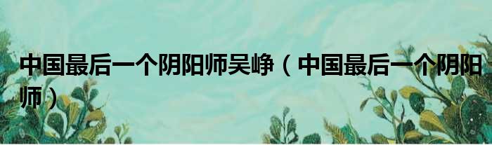 中国最后一个阴阳师吴峥(中国最后一个阴阳师)