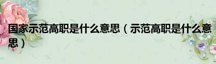 导读 大家好,今天小六子来为大家解答以下的问题,关于国家示范高职是什么意思,示范高职是什么意思这个很多人还不知道,现在让我们一起来看看吧