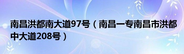 导读 大家好,今天小六子来为大家解答以下的问题,关于南昌洪都南大道97号,南昌一专南昌市洪都中大道208号这个很多人还不知道,现在让我们一起来