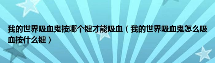 导读 大家好,今天小六子来为大家解答以下的问题,关于我的世界吸血鬼按哪个键才能吸血,我的世界吸血鬼怎么吸血按什么键这个很多人还不知道,现