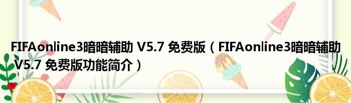 FIFAonline3暗暗辅助 V5.7 免费版(FIFAonline3暗暗辅助 V5.7 免费版功能简介)