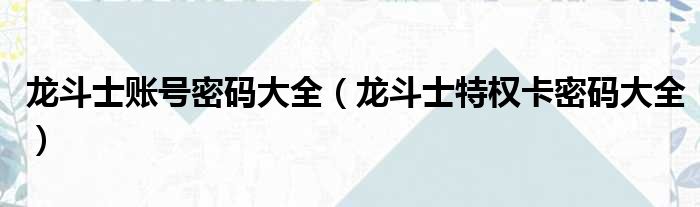 导读 大家好,今天小六子来为大家解答以下的问题,关于龙斗士账号密码大全,龙斗士特权卡密码大全这个很多人还不知道,现在让我们一起来看看吧!1