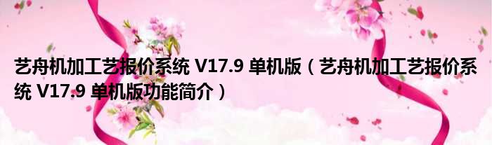 艺舟机加工艺报价系统 V17.9 单机版(艺舟机加工艺报价系统 V17.9 单机版功能简介)