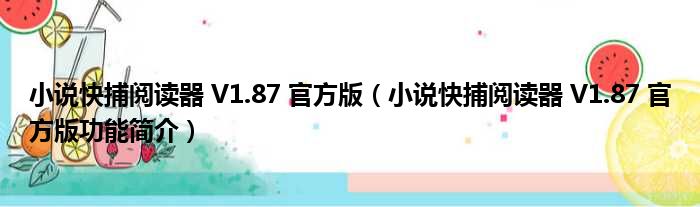 小说快捕阅读器 V1.87 官方版(小说快捕阅读器 V1.87 官方版功能简介)