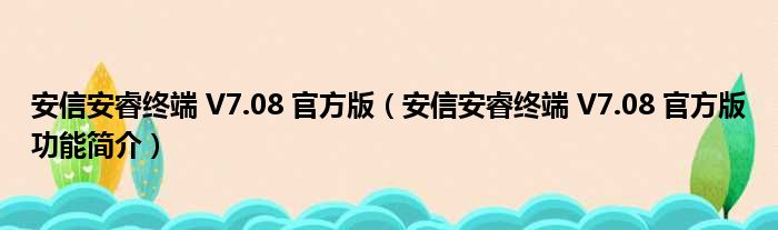 安信安睿终端 V7.08 官方版(安信安睿终端 V7.08 官方版功能简介)